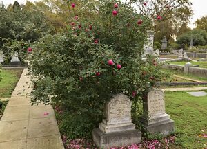 The rose was found at the graves of Elisabeth Stober (* 21.02.1797 in Germany, † 16.06.1884 in Sacramento, CA, USA)[1] and her son John Sebastian Stober (* 21. 01.1836 in Germany, † 1.08.1883 in Sacramento)[2] found in the Historic Old Sacramento City Cemetery, Sacramento, CA, USA. It is most probably 'Louis-Philippe, Chinarose'.
