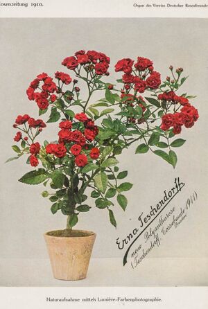 Viktor Teschendorff entdeckte diesen Sport 1908 und brachte ihn im Herbst 1911 in den Handel. Benannt hat er die Rose nach seiner Frau Agnes Elisabeth Erna, geb. Bornemann (* 1884, † 1968)[1].