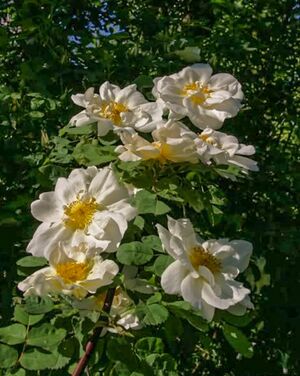 Sie wächst im Rosengarten Alter Friedhof Erndtebrück, der Standort ist sonnig, der Boden ist steinig, lehmig.