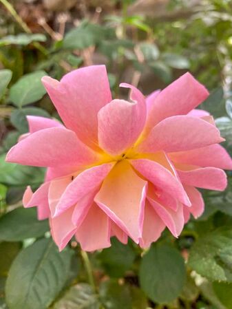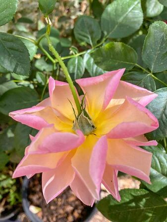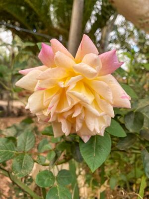 Die Farbe der Blüten ist sehr variabel: Gelb mit karmin-roten Streifen oder Flecken, rosa Schattierungen oder fast rein Gelbe oder orange Petalen. Es erscheinen aber auch Blüten, die halb rosa, halb creme-gelb sind - vermutlich als Sport oder Rücksport.