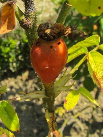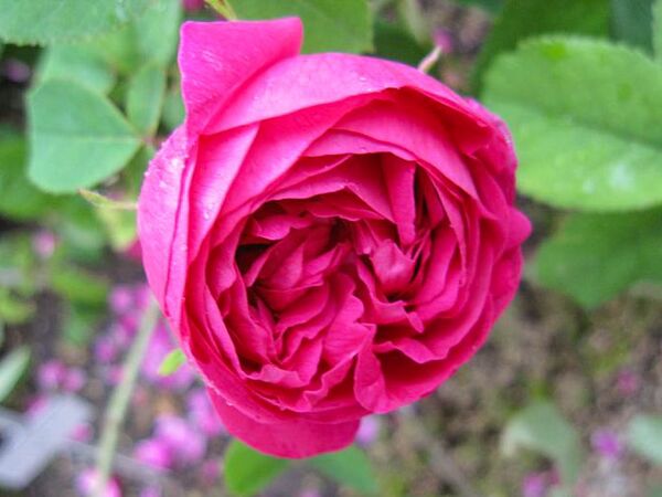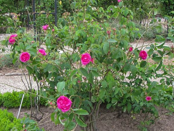 Die Rose steht in Isernhagen. Das ist ein Geschenk. Auf dem Schildchen stand: "Rose du Roi à fleurs". Sie ist wahrscheinlich die "Rose du Roi", denn sie ist heller als "Rose du Roi à Fleurs Pourpres".