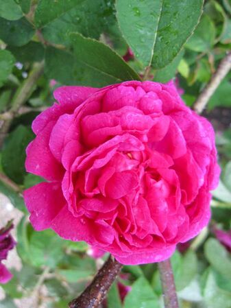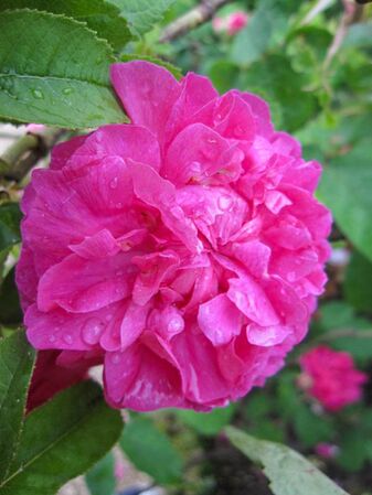 Meine Rose stammt von Frau Schnell, einer pensionierten Gymnasiallehrerin aus Lauterbach und wächst wurzelecht. Es war meine erste Historische Rose im Garten, bevor ich wusste was das ist. Da sie nicht immer duftet und die Blüten manchmal etwas unordentlich sind, war meine erste Begegnung mit einer Blüte von ihr enttäuschend, ich beachtetet sie weiter nicht. Zwei Jahre später roch ich im richtigen Moment dran, die Blüte war wohlgeformt und ich war begeistert. Die Rose wurde 'Frau Schnell' getauft und einige Jahre später mit der Hilfe von Frau Brumme in Sangerhausen identifiziert.